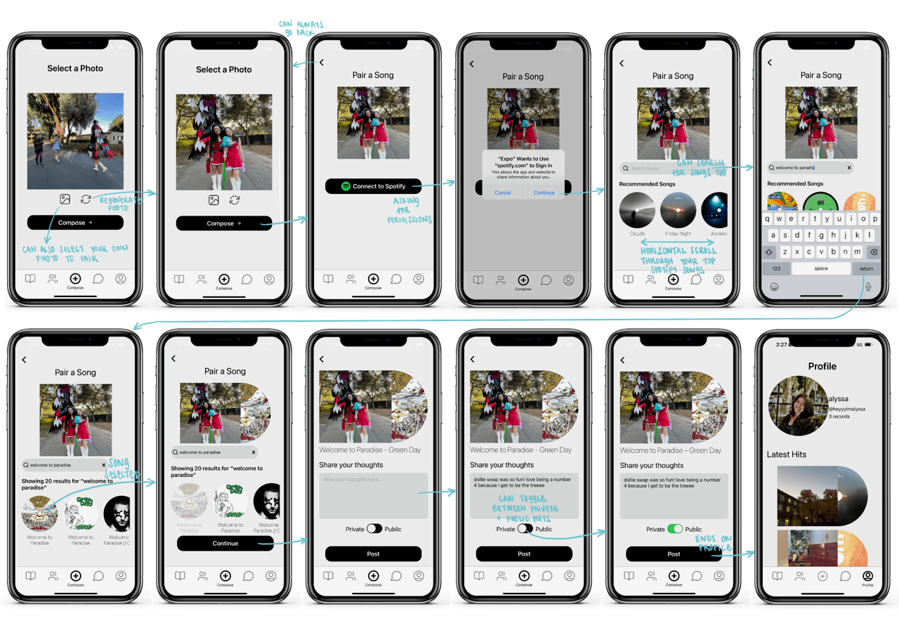If I were to revisit Noted, I'd want to explore in-app song playback. Currently you can only see the album art and title, but hearing the music while viewing a pairing would add a whole new layer. I'd also want to build out the social network more intentionally, moving from "everyone can see everything" to curated, invite-only connections that match the app's intimate tone.