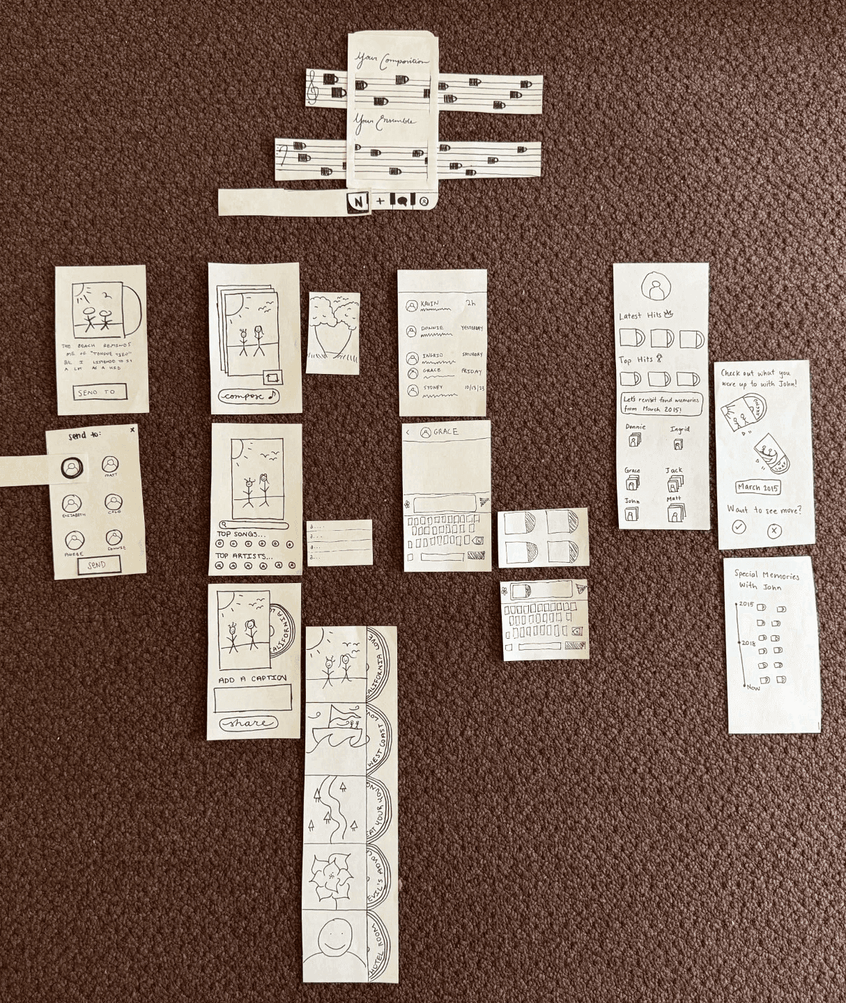 We started testing in the lowest-stakes way possible. We built a paper prototype with sliding strips of paper for scrollable elements and tested with five participants recruited from around campus.